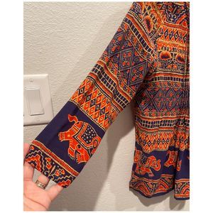 VANESSA VIRGINIA Mahdia Boho Peasant Elephant Print Blouse. Size 0