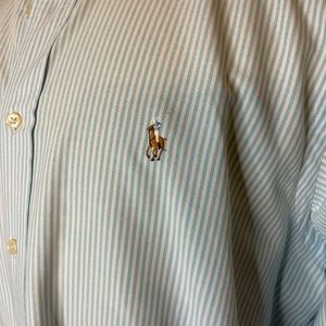 RALPH LAUREN Teal Stripe Oxford Button Down Shirt Size 16.5-35