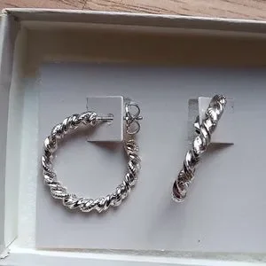 dated 1986 named fiery ini"see dangle pierced sterling silver earrings with surgical steel posts n.i.b. catalog ordered and stored sleeve and box