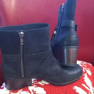 UPPER: Waterproof full grain leather upper with suede back panel. Medial side zipper. Canvas lining.