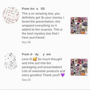 • Photos reflect some brands & products you will receive, however, I’m constantly restocking so I’m always getting new brands in.