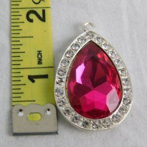 Large Pink w/White Rhinestones - Silver Tone - 1.75"