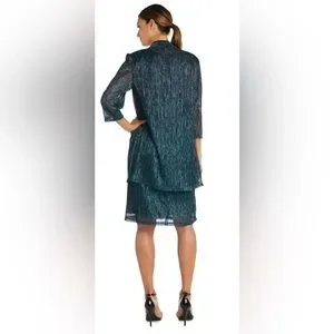 NWT R&M Richards Sleeveless Cascade Front Metallic Knit Dress & Jacket Size 10P