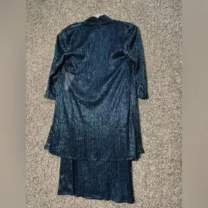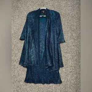 NWT R&M Richards Sleeveless Cascade Front Metallic Knit Dress & Jacket