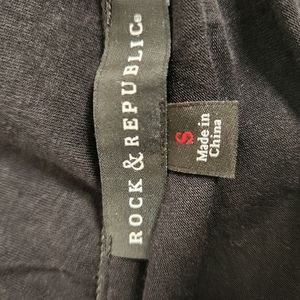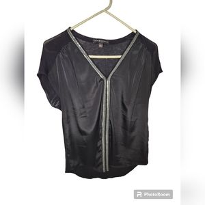 Rock & Republic Black Sequin Trimmed Mixed Media Blouse Size S