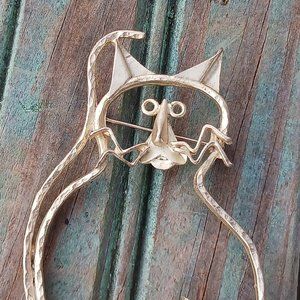 Fun funky vintage large stylized modern cat pin/brooch.