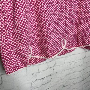 Zipper closure. White lining underneath. Pink and white scalloped/abstract print.