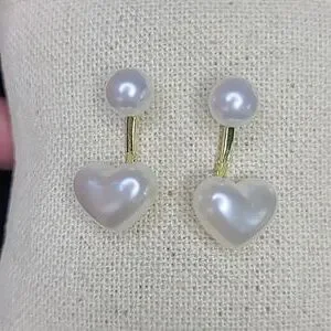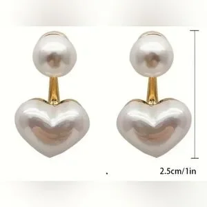 Pearl Heart Earrings White Gold Tone Lightweight Stud Brand New Hypoallergenic
