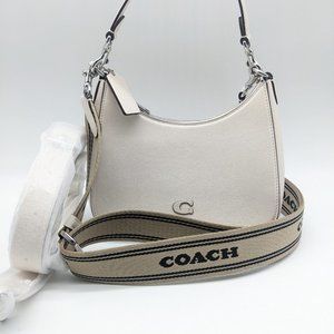 COACH Hobo pebbled leather logo strap shoulder crossbody bag - Chalk/Ivory