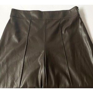 Zara Pants Women's Size Large Brown Faux Leather Wide Leg Crop Straight Read