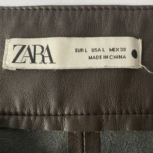 Zara Pants Womens Size Large Brown Faux Leather Wide Leg Crop Straight Read