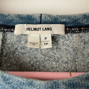 Denim-like color crewneck sweatshirt with pockets by Helmut Lang. 100% cotton. Great preowned condition. Size P/TP. Like a small. See measurements in photos.