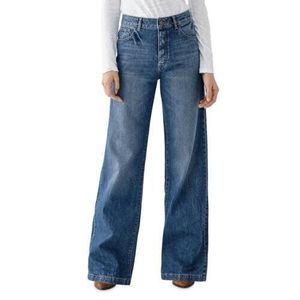 DL1961 Women's Hepburn High Rise Button Fly Denim Wide Leg Strauss Jeans