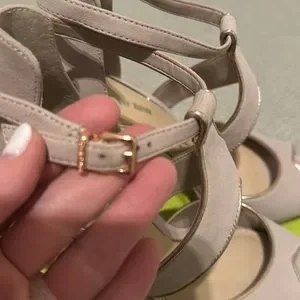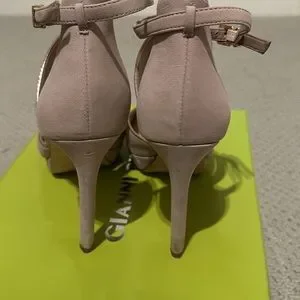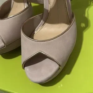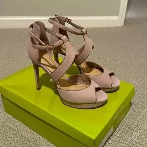 Gianni Bini Geordannah Platform Heeled Sandals Nude Taupe Rose Gold Womens 8 EUC