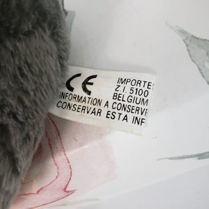 Vintage Belgium Gray Dressed Elephant Plush Trunk Up Pink RARE Stuffed Animal