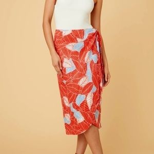 EUC UNTUCKit Wilma Coral Orange Tropical Print Wrap Midi Skirt Size Large