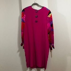 Fuchsia 100% silk long sleeve shift dress