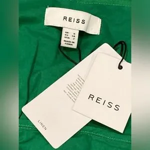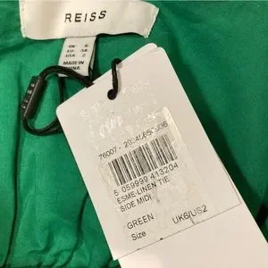 NWT Reiss Emerald Green Esme Linen Tie Side Midi Dress - Sz 2