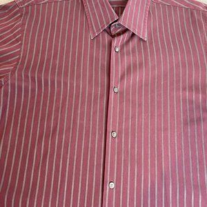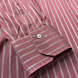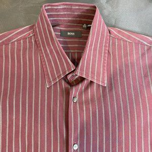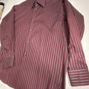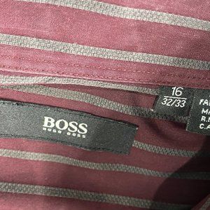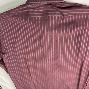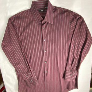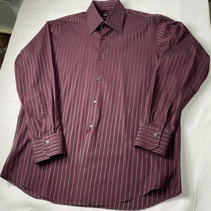 HUGO BOSS Men's Burgandy /Gray Stripe Long Sleeve Button Shirt 16 32/33