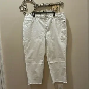 Plus Size SONOMA White Nicolini Curvy Fit Straight Crop Raw Hem Jean Pants 20W