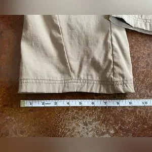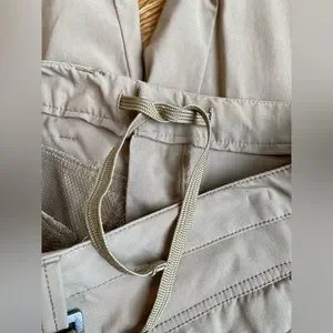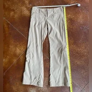 Versatile Athleta pants, good used condition. Color is warm beige, closest to photos that look more brown then grey. Inside drawstring, other unique details like zip pocket on leg. I wore these for work and travel, but they’re designed for hiking, too.