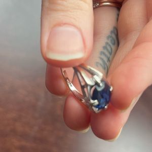14k White Gold Sapphire ring with “14k” stamp as shown in a beautiful setting. Approximate size: 7 or 7.5