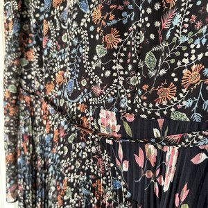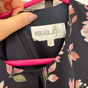 Mikael Aghal Pleated Floral-Print Crinkled Georgette Gown Midnight Blue Size 10