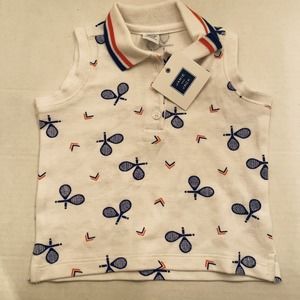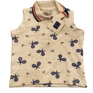 NWT Janie And Jack Infant White Sports Tennis Print Sleeveless Polo 12-18 Months