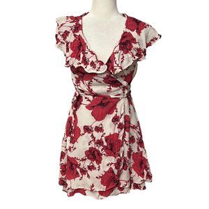 Free People Women's Wrap Dress Floral Ruffle Size Small Rayon Viscose