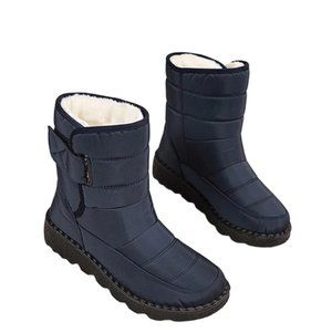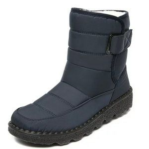 1. Warm snow boots, plush lining, classic winter boots design, mid calf height, Velcro closure.