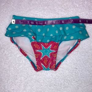 Vguc pfsf no stains, tears or holes dark pink, yellow and aqua blue with polka dots, Star fish and ruffles
