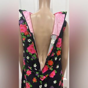 Measurements laying flat: pit to pit 17.5, waist 18” , hips 20.5. Length from pit 25.5. Zipper in back with 2 hook & eye clasps. Gold hardware. The dress looks like it’s never been worn. It’s in excellent condition.