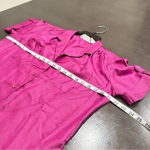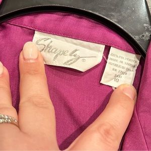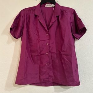 Vintage Satin Purple Short Sleeve Button Down Blouse, Romantic, Size 10 Medium