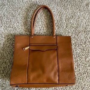 Rebecca Minkoff Caramel Brown Pebbled Leather Tote Bag Purse Black Lining
