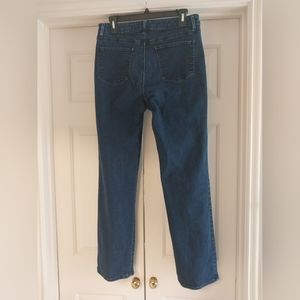 High waist, boot cut, dark denim jeans, no holes or rips, snug fit, 31 inch inseam, from smoke/pet free home.
