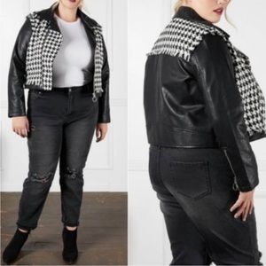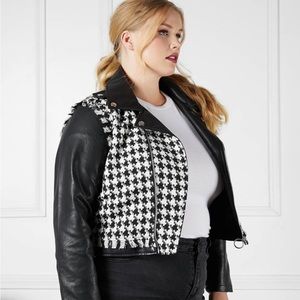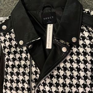 NWT-SONCY houndstooth frayed faux leather jacket!