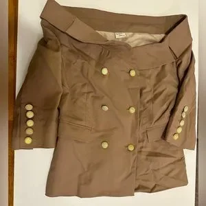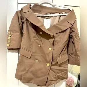 Beige off the shoulder double breasted blazer by Oo La La Glam boutique. Size medium with 2 pockets and gold buttons.