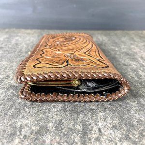 Tooled leather embossed clutch/wallet - handmade vintage