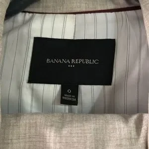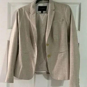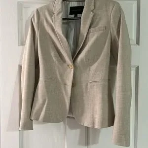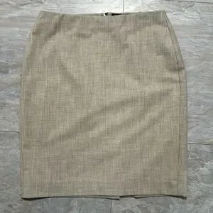 Banana Republic tan skirt suit. Knee length skirt and blazer. Woven-look pattern, 2-button blazer. Both pieces lined.