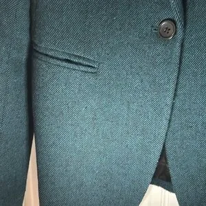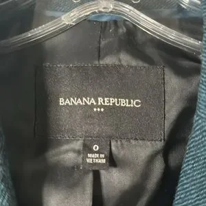 Banana Republic Factory size 0 one button teal-green and black woven blazer. Wool blend with 4-button detail and wrist. Functional front pockets.