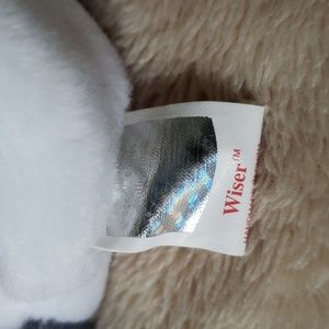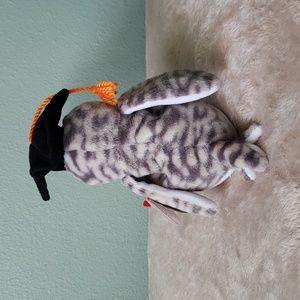 Wiser the Beanie is a variegated gray owl with a white face and belly and black beak. He wears a black waterboard Graduate hat with the words “CLASS OF ’99” written on it (If you are creative, there are many ways decorate to update the year). He sits about 8" tall, has a 5th generation hang tag and a 7th gen tush tag. In excellent new condition w/pristine tag. See photos/video for more description & details.