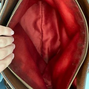 Authentic vintage coach bag beautiful brown leather that looks better with age 🤎 red lining and gold hardware. Zipper is perfect condition. Multiple fun compartments.