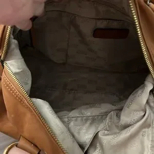 MK leather and caramel colored bag is gently loved with no signs of weathering