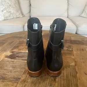 The leather on these cute black boots is pristine! They’re in great used condition. Slight wear shown on heel/sole in photos.