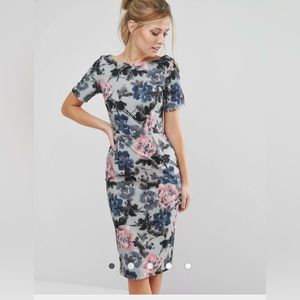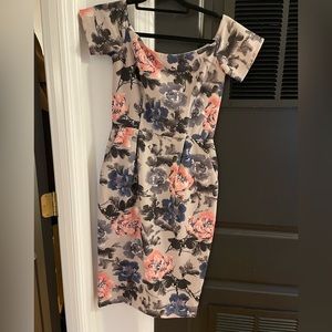 Worn once! Super comfortable, and flex material. Has pockets! MIDI length. Can be worn off the shoulders. Perfect for a wedding or shower. Like new!