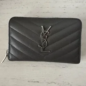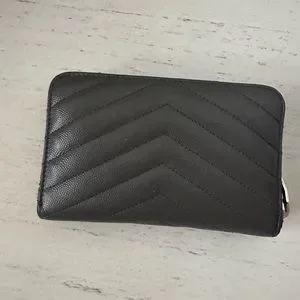 Wonderful condition. Authentic Saint Laurent zipped wallet. 8 card slots (4 each side), 2 additional side pockets and zipped middle coin section. Hard to find model. Perfect size that holds everything you need. Comes with Saint Laurent box and dustbag as pictured.