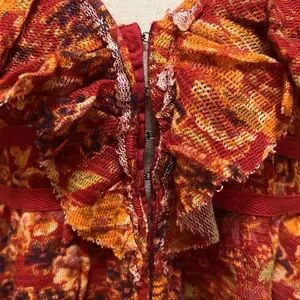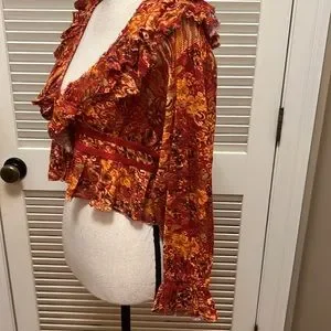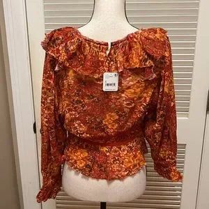 Free People Rudi Ruffle Top in Cherry Combo, Size Small