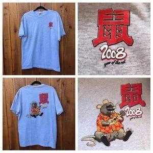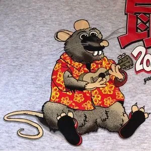 2008 Year of the Rat Hawaiian Ukulele & Slippahs - Gray Shirt - Large NWOT