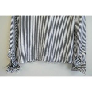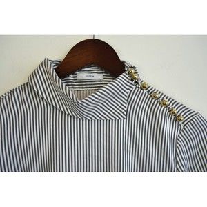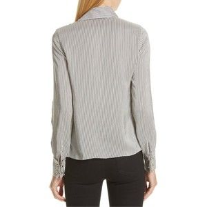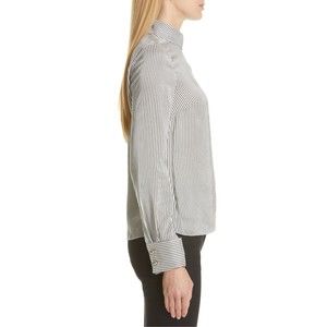 ERDEM Grey White Gold Cuff Link FLORINN Pin-Stripe Satin Blouse 6 US 10 42 38 36