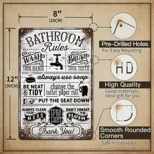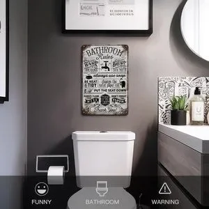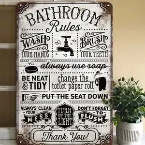 Vintage Bathroom Rules Wall Decor, 8x12